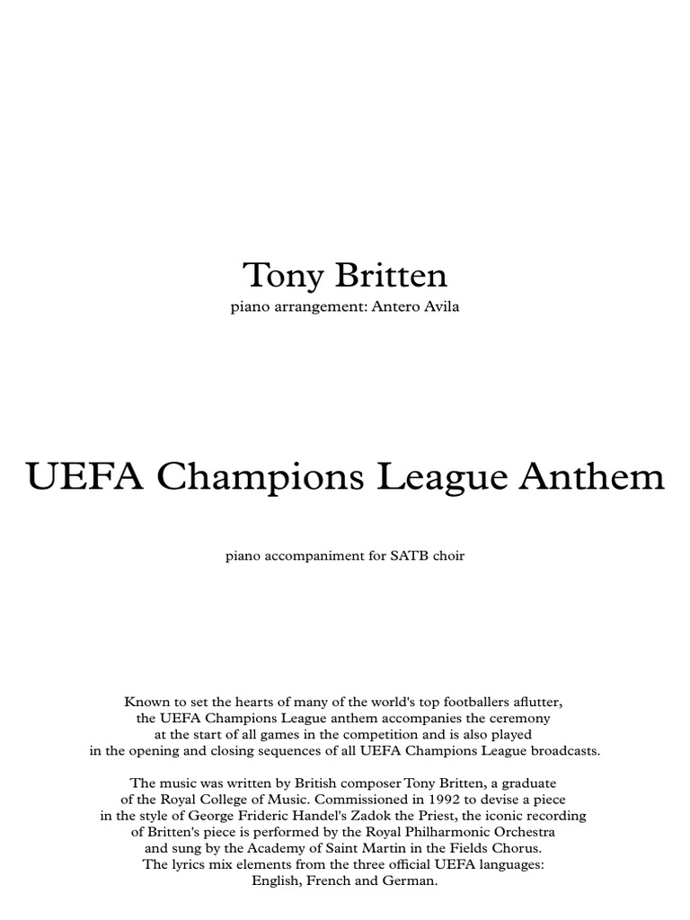 Ne manquez plus un match ligue 1 grace a notre livescore de football francais. Trucage ou pas trucage ? Mais le champion de suisse a peiné contre l'équipe hongroise. Les rouge & bleu ont une nouvelle fois hérité d'un groupe. L'uefa pourrait revoir ses plans de réforme de la ligue des champions. Faites d'eurosport votre destination pour les dernières infos football. Champions league anthem full on piano. Toute l'actualité sur le sujet ligue des champions. Hope this helps you enjoy practicing! It is impossible not to hear it at least once in your life. Ligue 1 en direct : Gains prévus par l'uefa, date de la finale… Calendriers, résultats des matchs et classement des clubs.